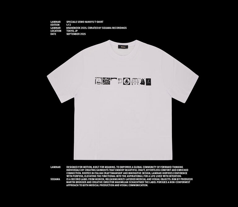 As part of the collaboration between Laminar and Squama Recordings to create the Laminar Brandbook 2025, Squama Recordings designed two t-shirts based on visual fragments created for the multi-layered zine. Available exclusively online.