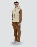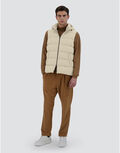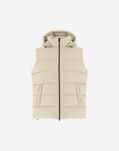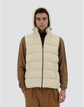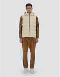 Vest in recycled nylon microfibre with a light coating on the reverse that gives the material a soft, waterproof texture and matt finish.